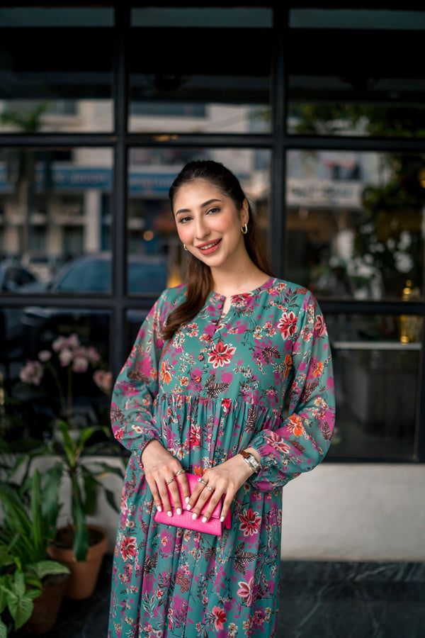 This elegant yet modest chiffon dress will make a great addition to your wardrobe.